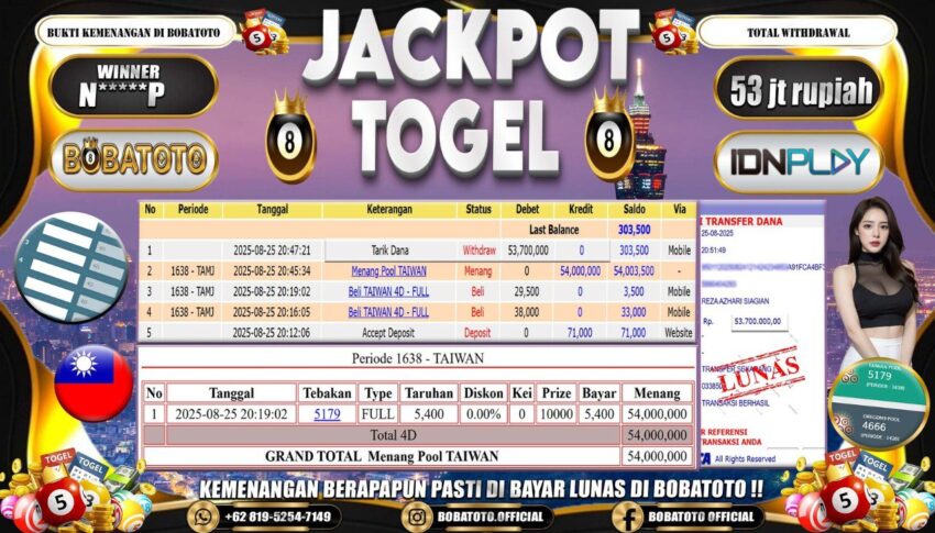 BOBATOTO JACKPOT TOGEL TAIWAN Rp.53,000,000,- LUNAS!!